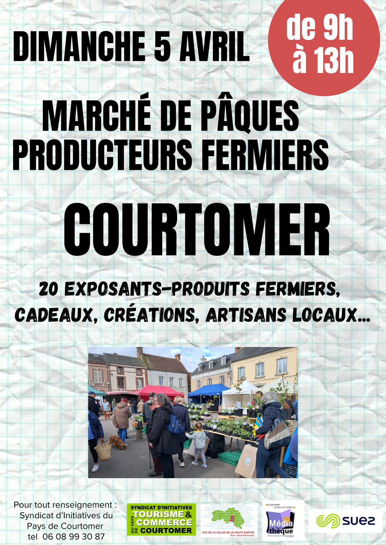 Marché de Pâques le dimanche 5 avril de 9h00 à 13h00 avec de nombreux exposants de produits fermiers, cadeaux, créations, et artisans locaux...