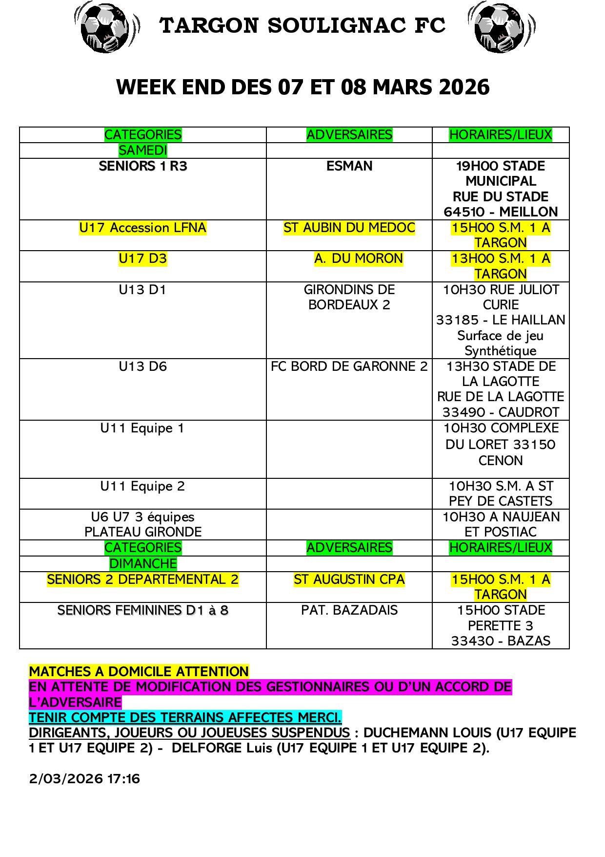 Publié le vendredi 06 mars 2026 - Targon Soulignac Football Club (TSFC)