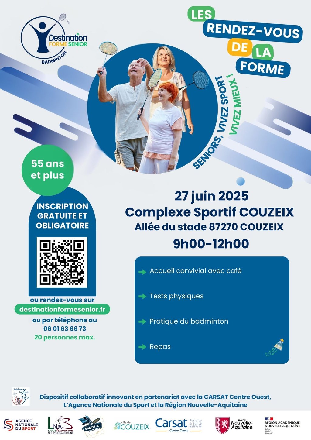 Un dispositif innovant et collaboratif, porté en partenariat avec la CARSAT Centre-Ouest, l’Agence nationale du sport et la Région Nouvelle-Aquitaine.