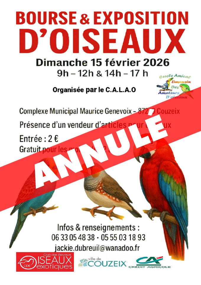Les passionnés d’ornithologie et les curieux sont invités à découvrir la Bourse & exposition d’oiseaux, organisée par le C.A.L.A.O, le dimanche 15 février au Centre culturel.