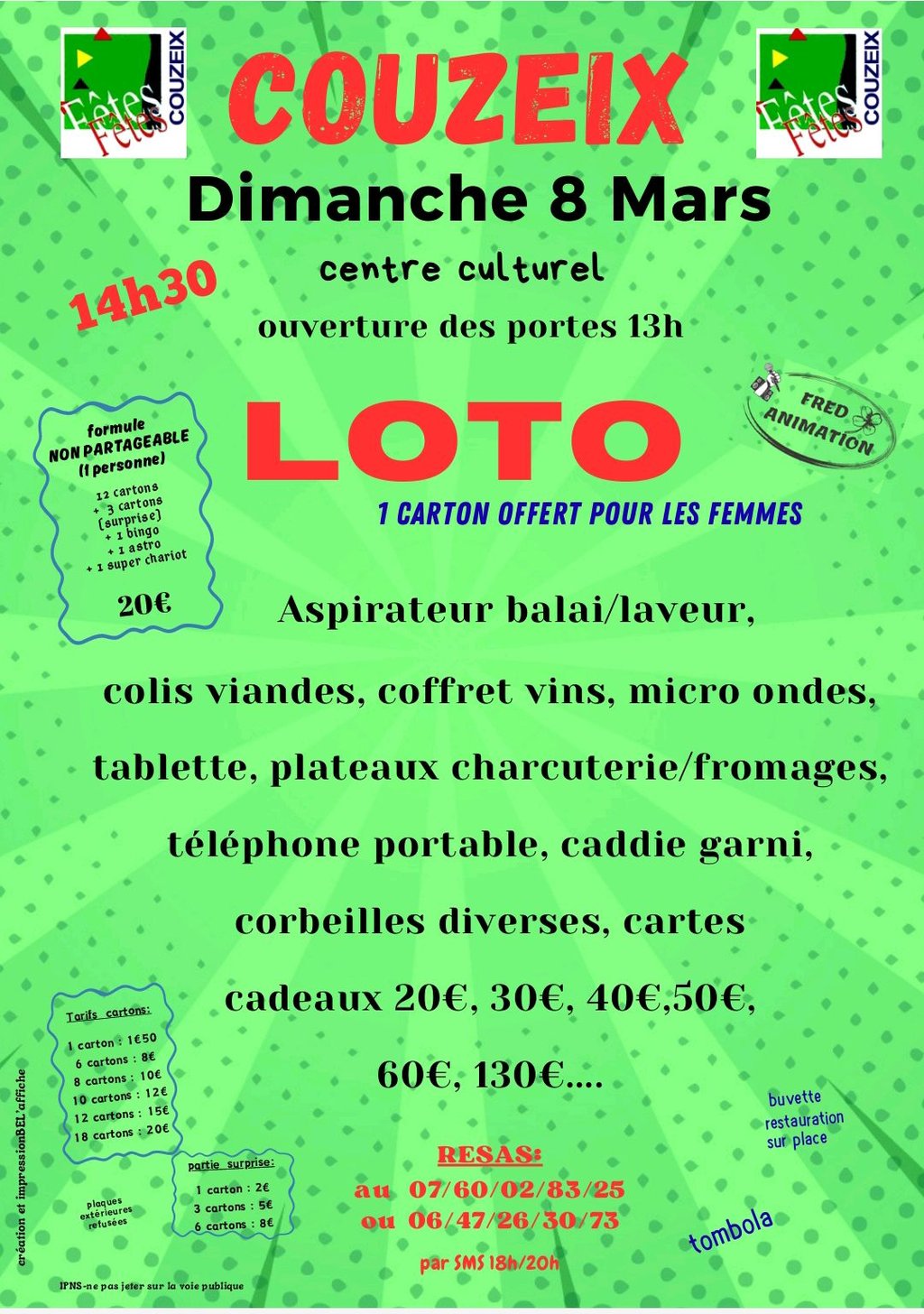 Le Comité des Fêtes organise un loto au Centre Culturel.