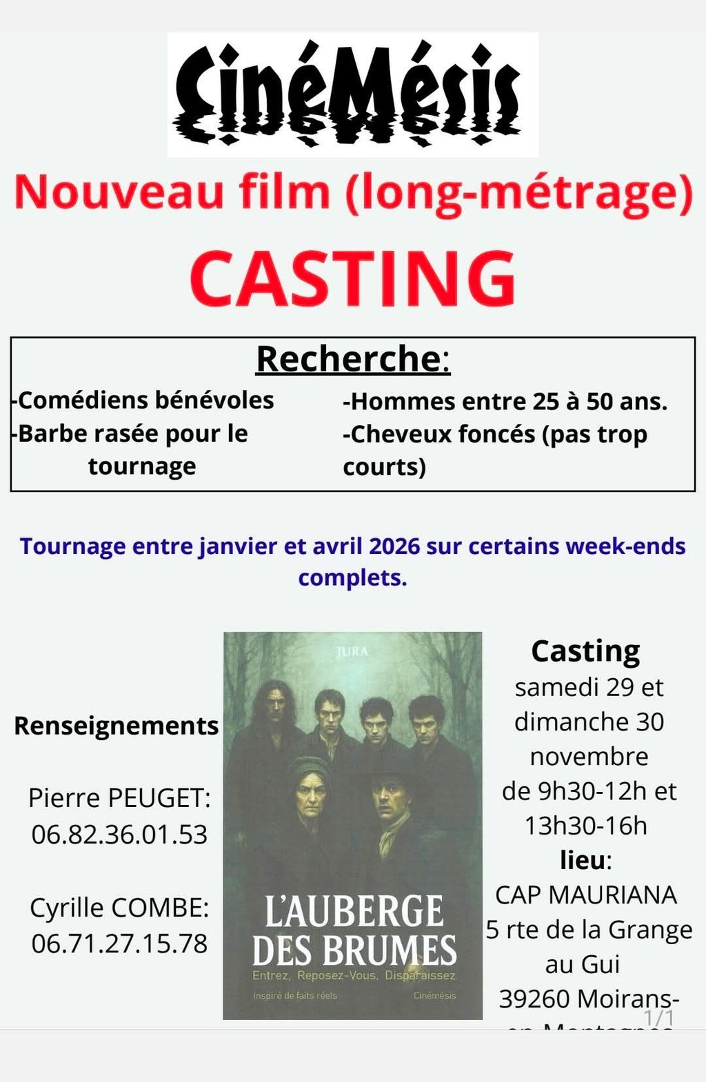 Si cela vous tente réserver votre week-end et plus... pour participer à ce beau projet cinématographique.
