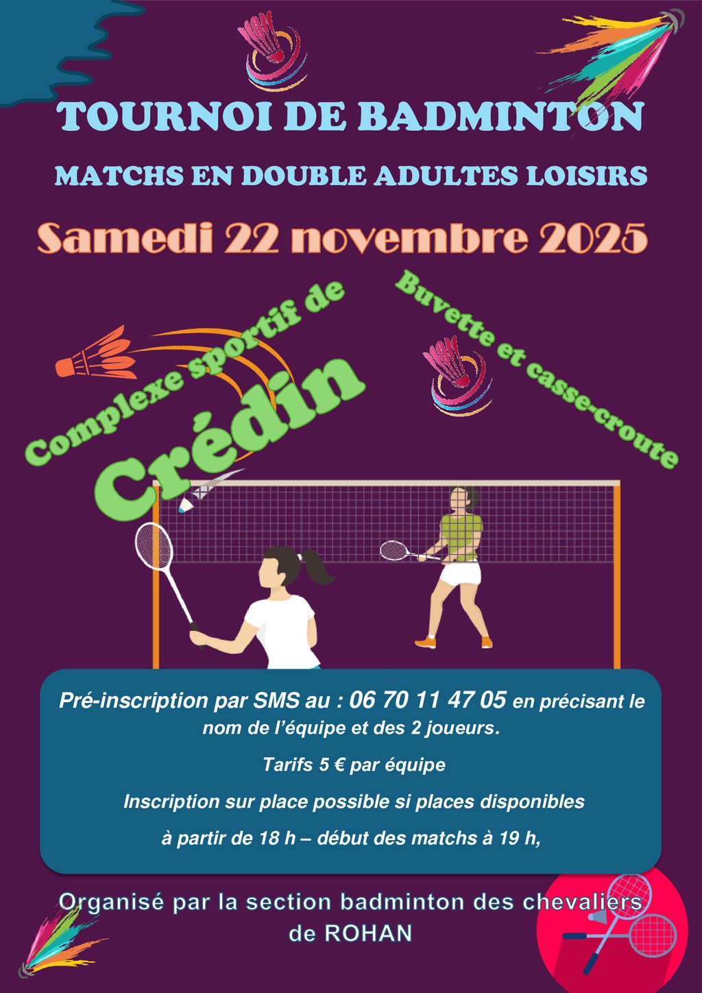 SMS au 06-07-11-47-05 en prĂ©cisant le nom de lâĂ©quipe et des 2 joueurs.