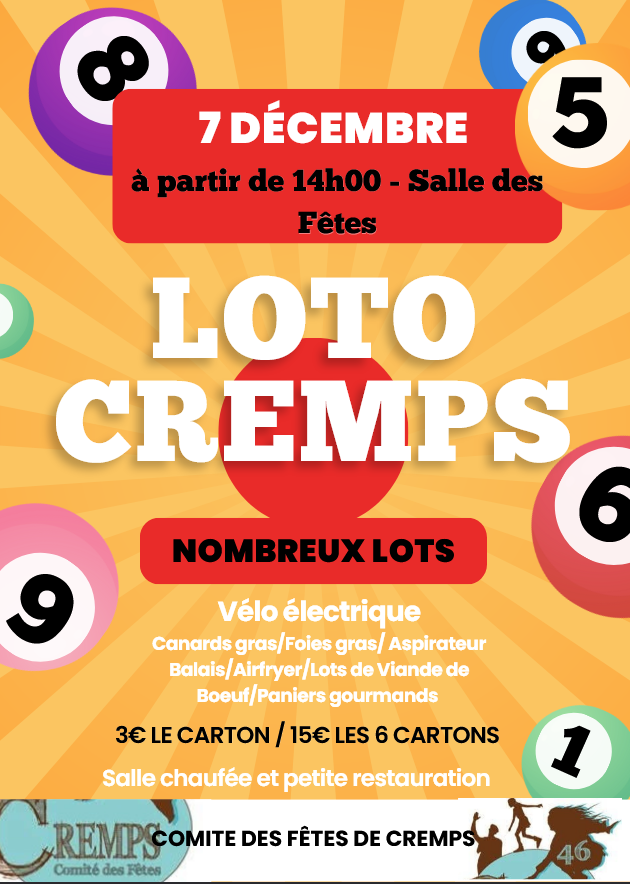 LOTO CREMPS - REPORTÉ A UNE DATE ULTERIEURE