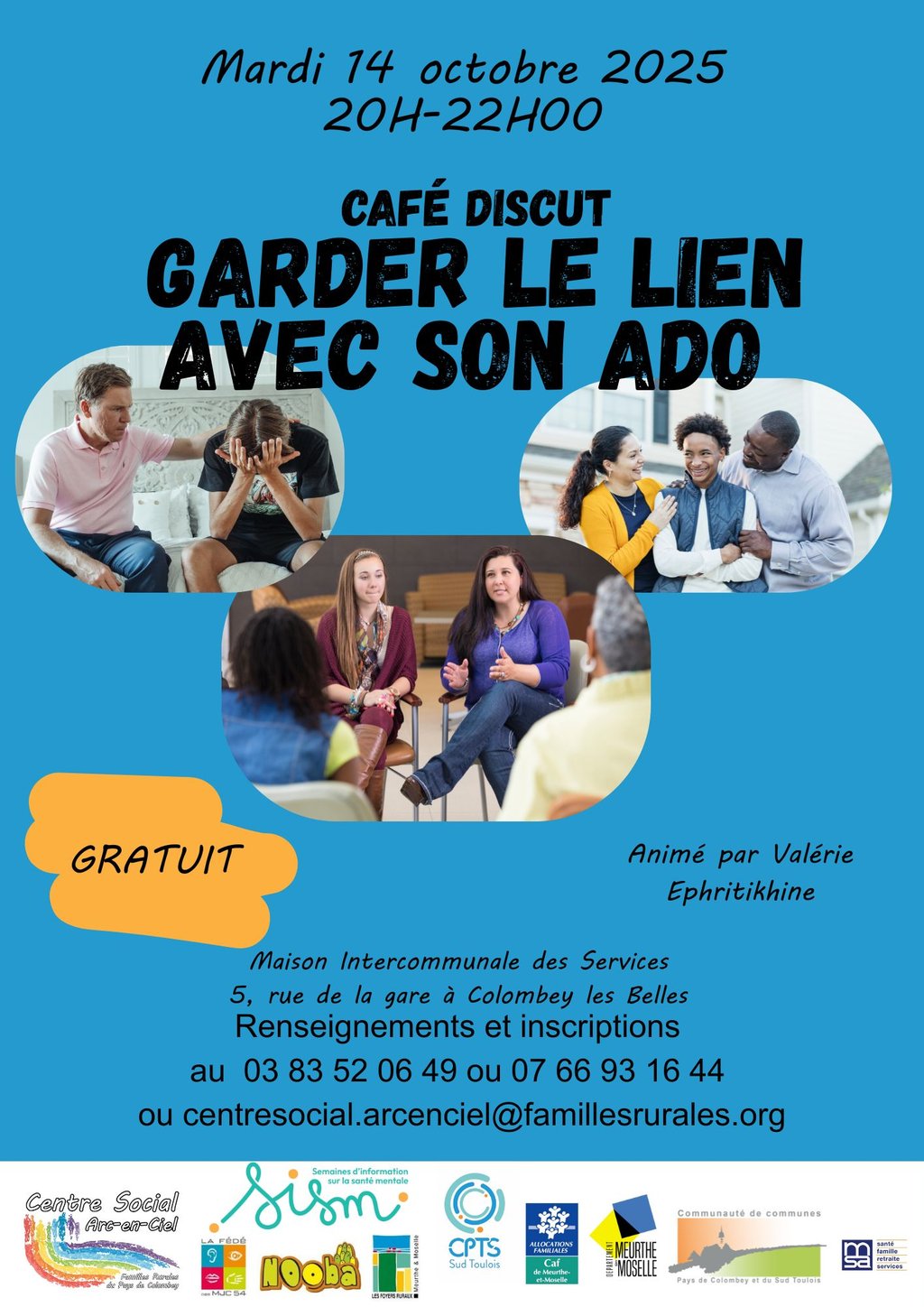 Cette rencontre se veut un espace bienveillant pour partager vos expériences, poser vos questions, et repartir avec des outils utiles pour mieux accompagner votre ado dans cette étape de vie.