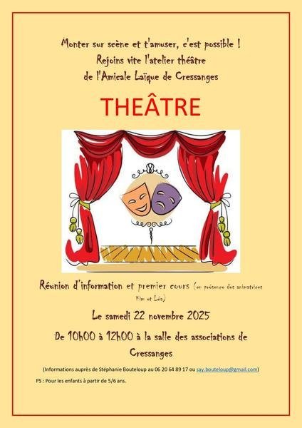 Réunion d'information et premier cours, pour rejoindre un atelier Théâtre.