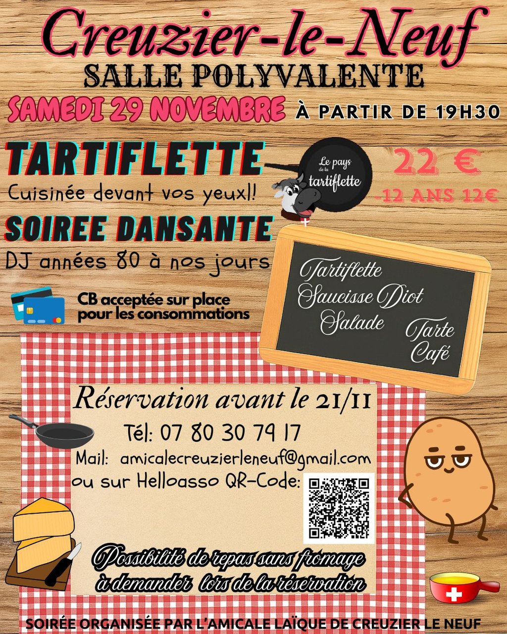 L'Amicale Laïque organise sa soirée Tartiflette le samedi 29 novembre à partir de 19 h 30 dans la salle polyvalente de Creuzier-le-Neuf.
