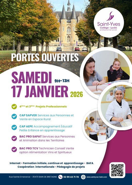 L'établissement St Yves (Collège et Lycée) organise une journée portes ouvertes en vue des inscriptions pour la prochaine année scolaire.