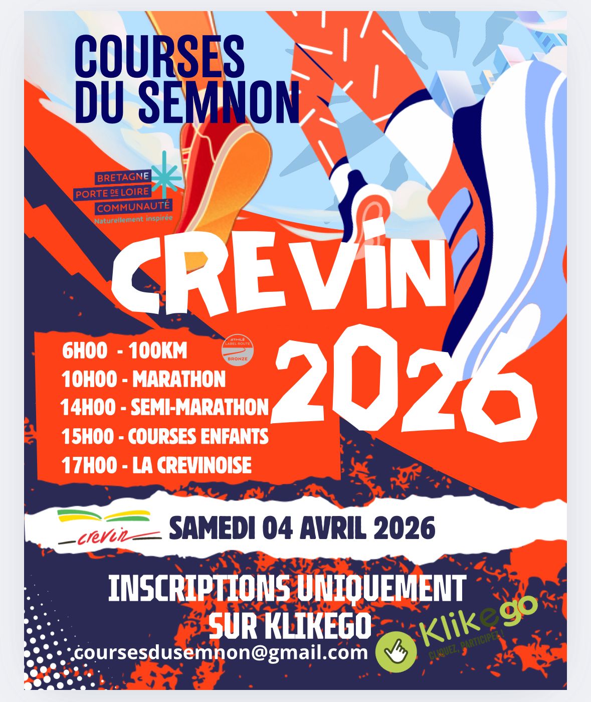 Avis Ă tous les passionnĂ©s de course Ă pied ! La 6á” Ă©dition du 100 km de Crevin revient le samedi 4 avril 2026 pour une journĂ©e sportive, conviviale et festive.Â