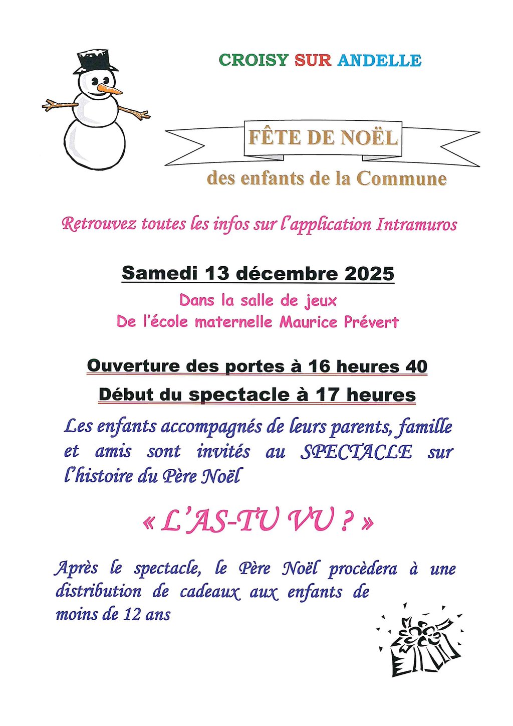 Après le spectacle, le Père Noël procèdera à une distribution de cadeaux aux enfants de moins de 12 ans