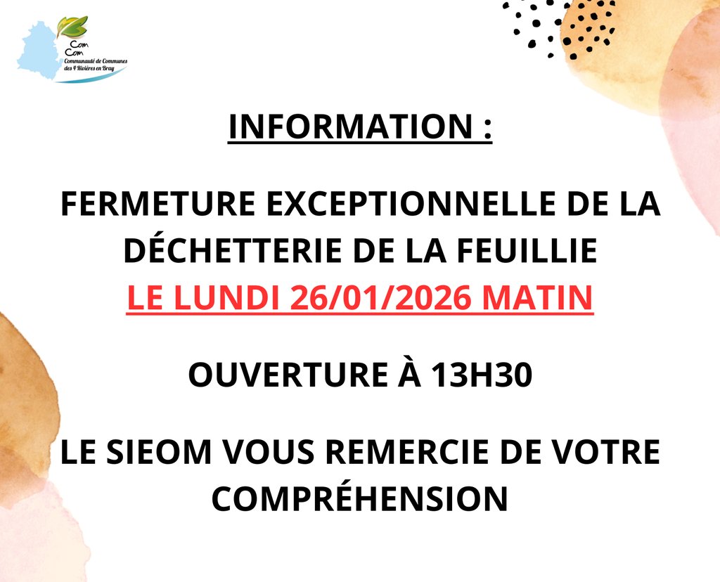 Fermeture exceptionnelle de la déchetterie de la Feuillie