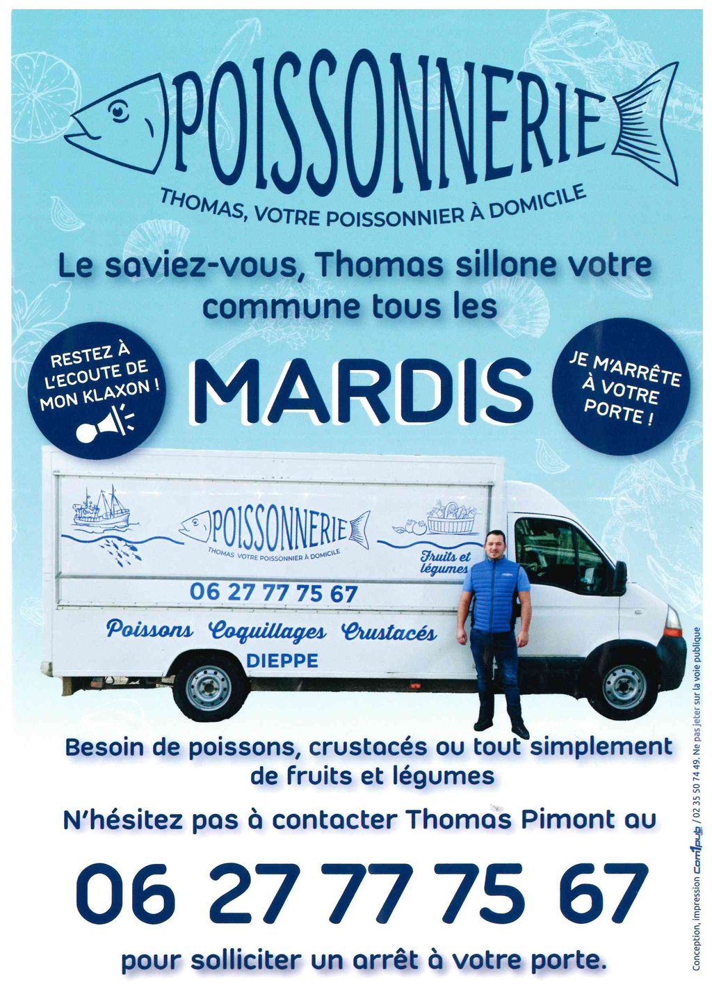 Un poissonnier passe tous les mardis dans notre commune vers 8h45-9h.