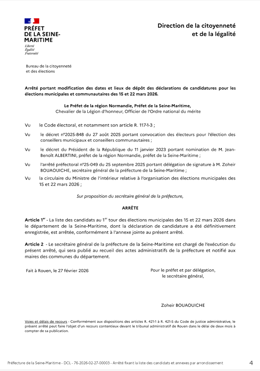 Arrêté préfectoral relatif à la liste des candidats aux élections municipales de 2026