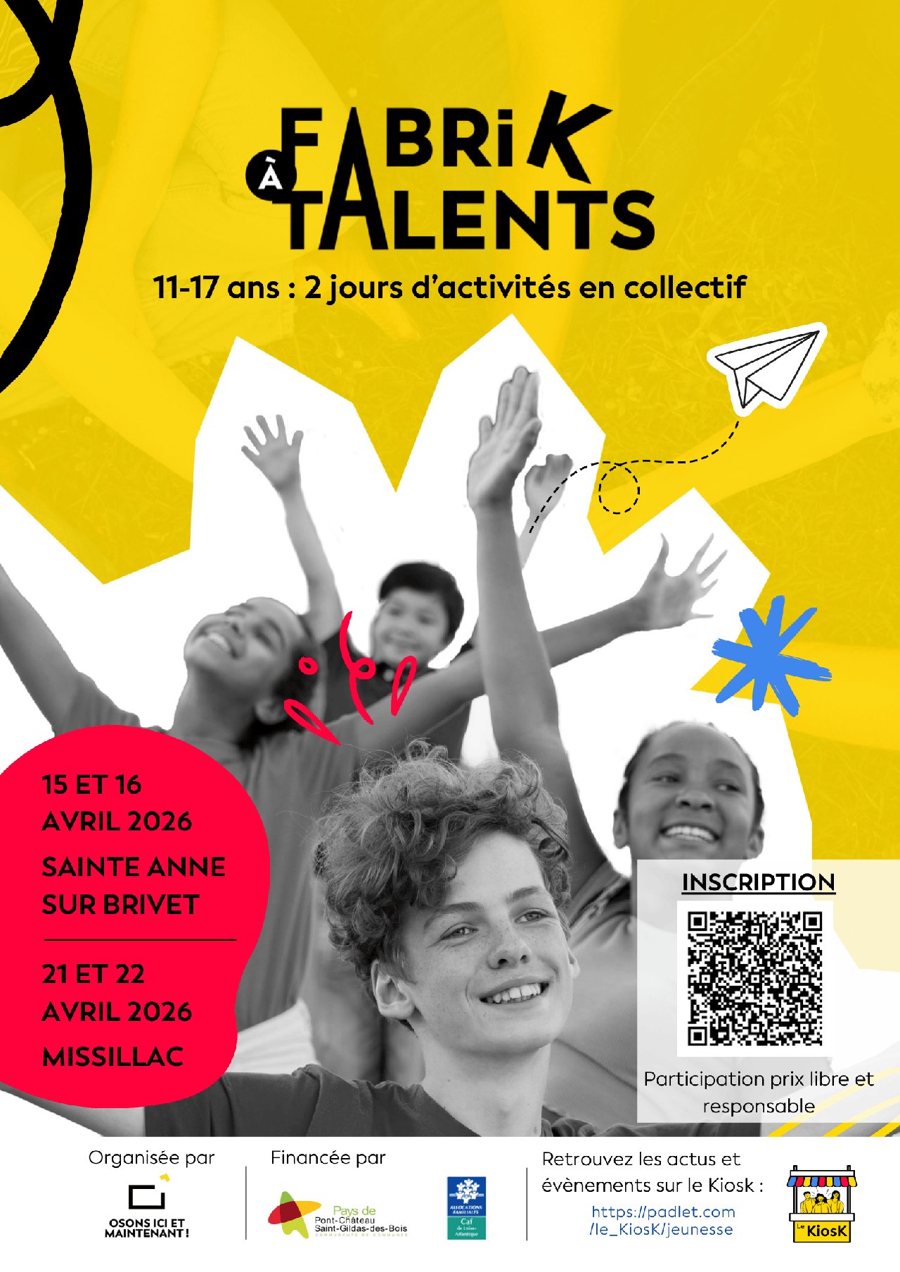 L’association « Osons Ici et Maintenant » propose de nouvelles éditions de la « Fabrik à Talents » aux jeunes de 11 à 17 ans durant les vacances d’avril 2026 :