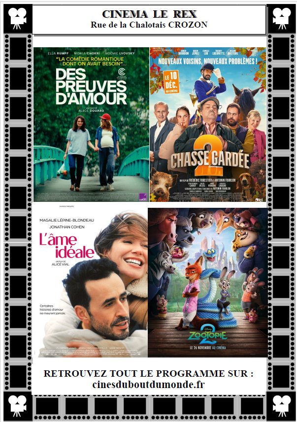 Retrouvez le programme du Cinéma Le Rex de Crozon et du Cinéma Rocamadour de Camaret.