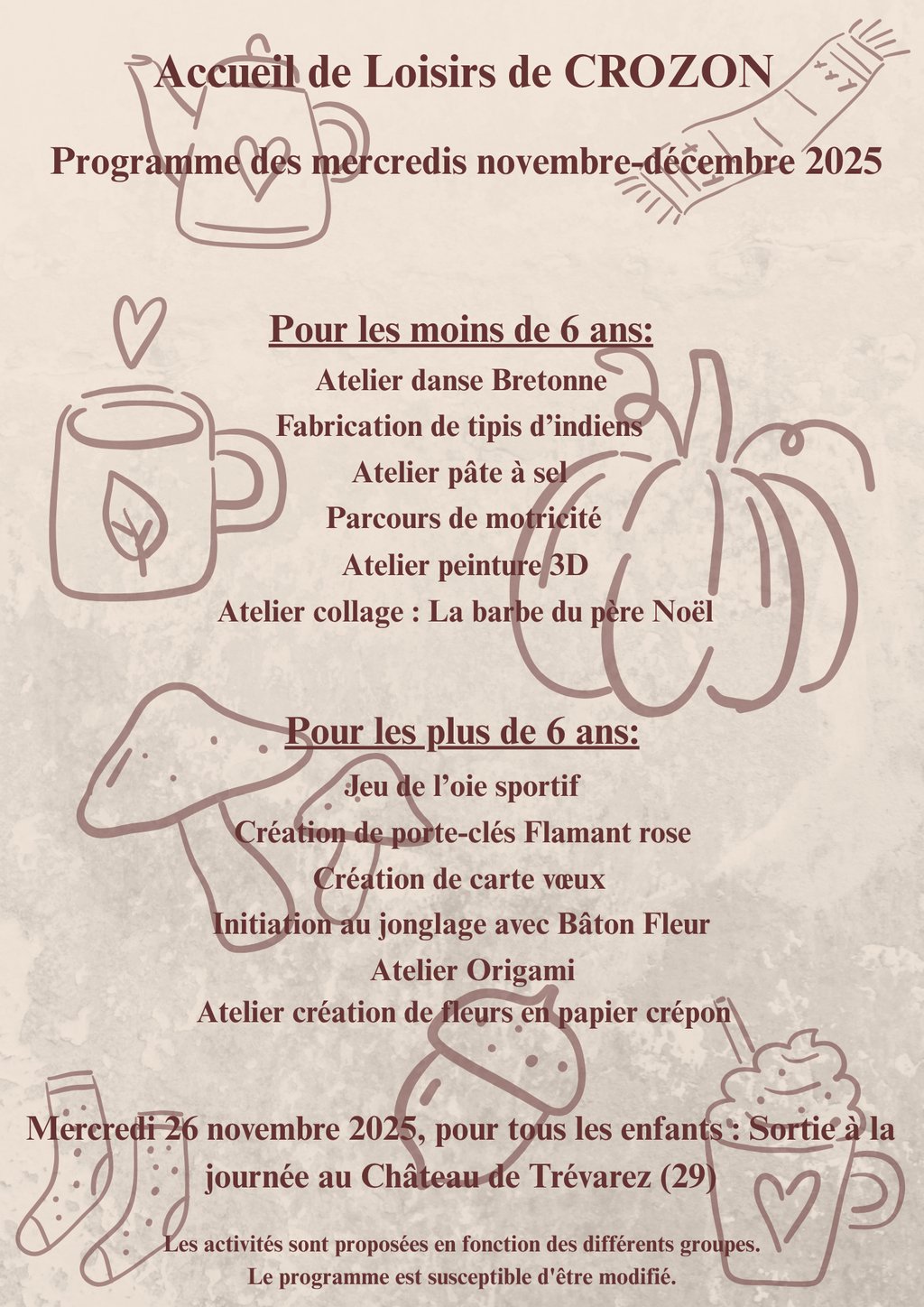 PROGRAMME D'ACTIVITÉS DES MERCREDIS NOVEMBRE-DÉCEMBRE 2025