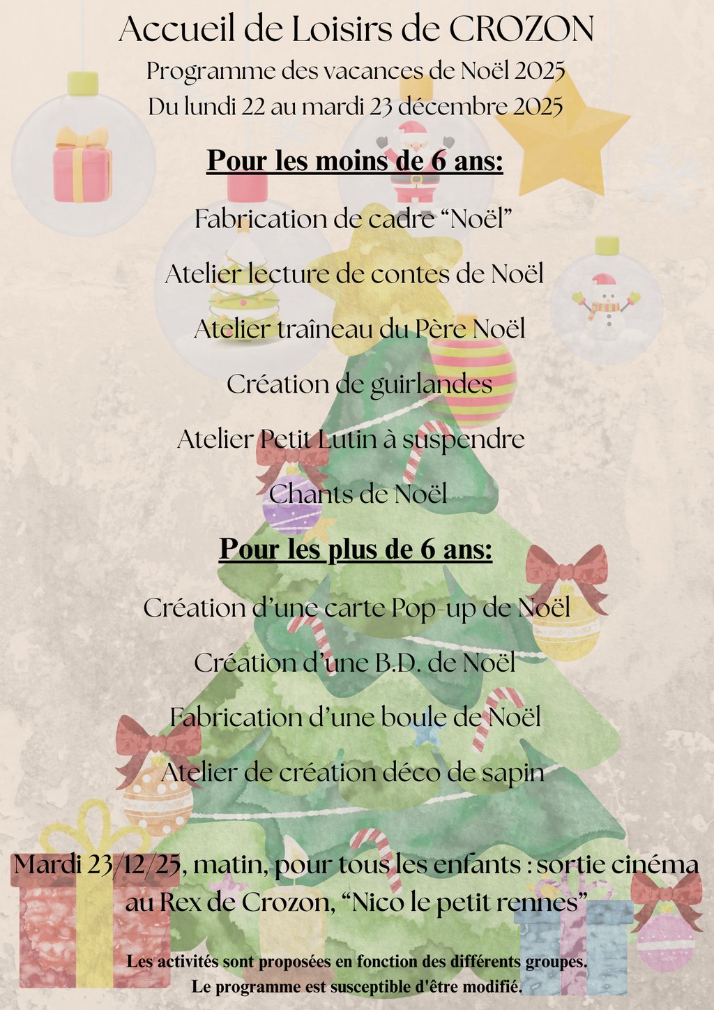 Publié le lundi 08 décembre 2025 - Accueil de Loisirs de Crozon