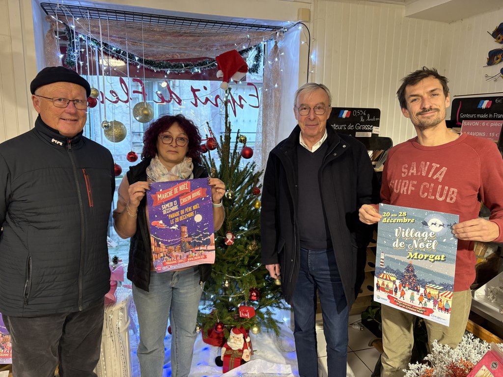Les commerçants, les artisans créateurs, les producteurs, les associations, les agents de la commune se mobilisent pour faire vivre Noël dans le centre-bourg les weekends du 13 et 20 Décembre Marché de Noël et Grande parade de Noël et au Village de Noël - Morgat du 20 au 28 décembre.