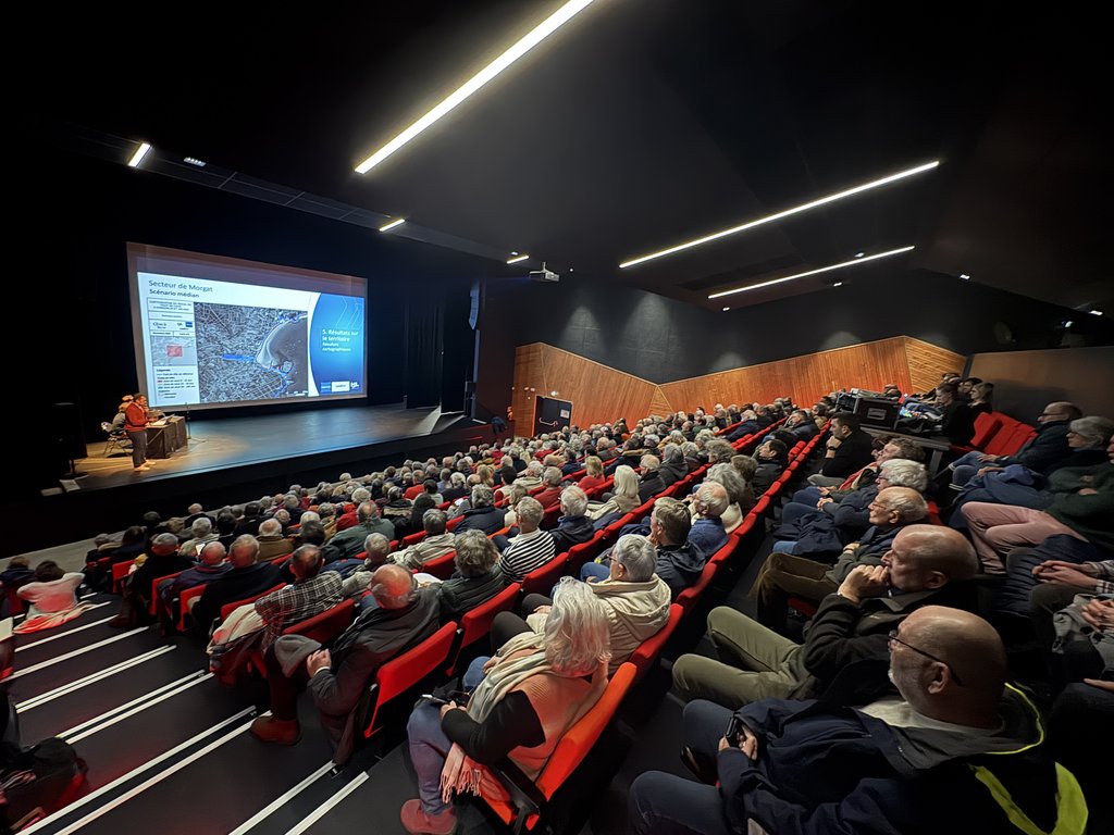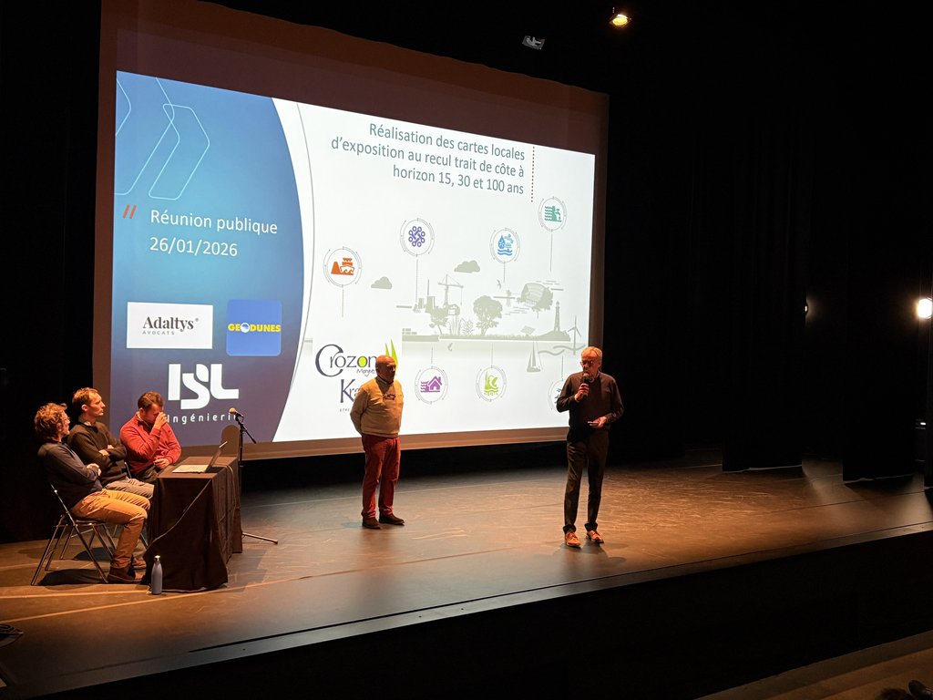 Lundi 26 janvier, près de 300 personnes se sont réunies à la salle de l’Améthyste à l’occasion de la réunion publique d’information consacrée à l’évolution du trait de côte sur le littoral de Crozon, malgré des conditions météorologiques particulièrement agitées. Une mobilisation remarquable, à la hauteur des enjeux abordés.