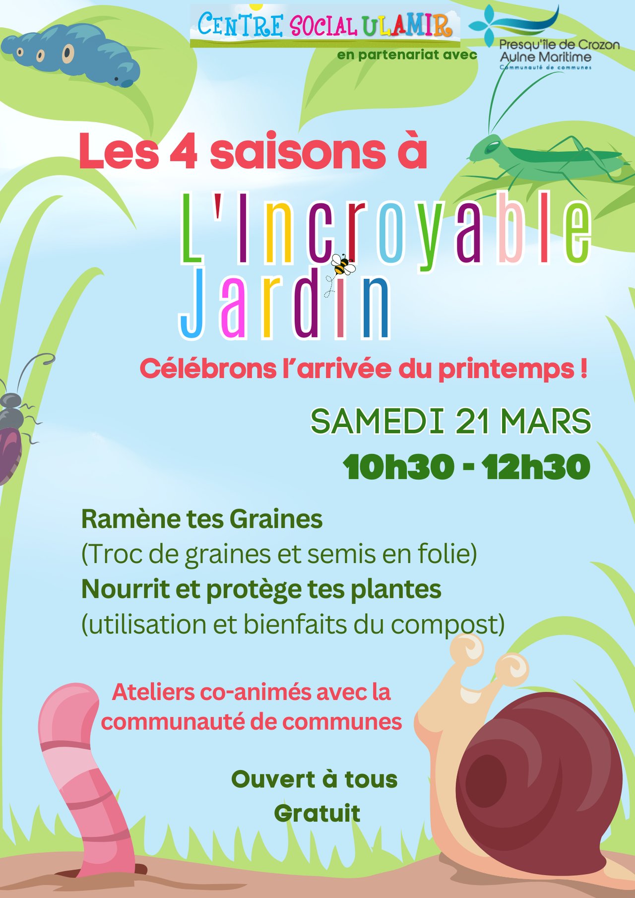 ☀️ A cette occasion, rendez-vous samedi 21 mars de 10h30 à 12h30 à l'Incroyable jardin de l'Ulamir pour célébrer l'arrivée des beaux jours !