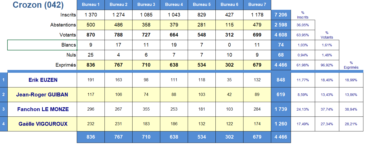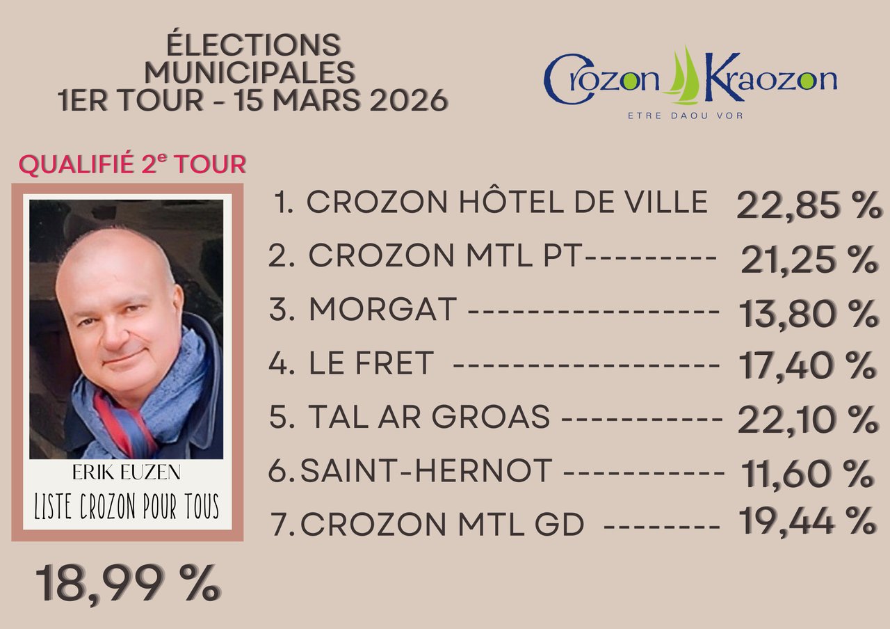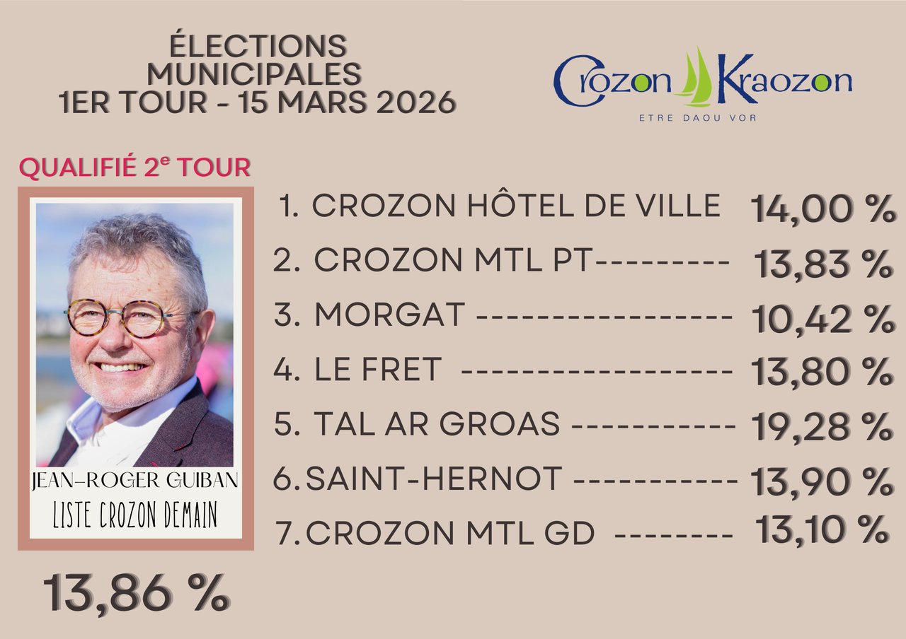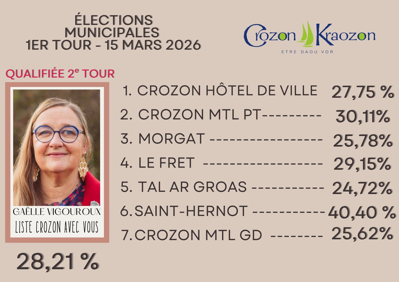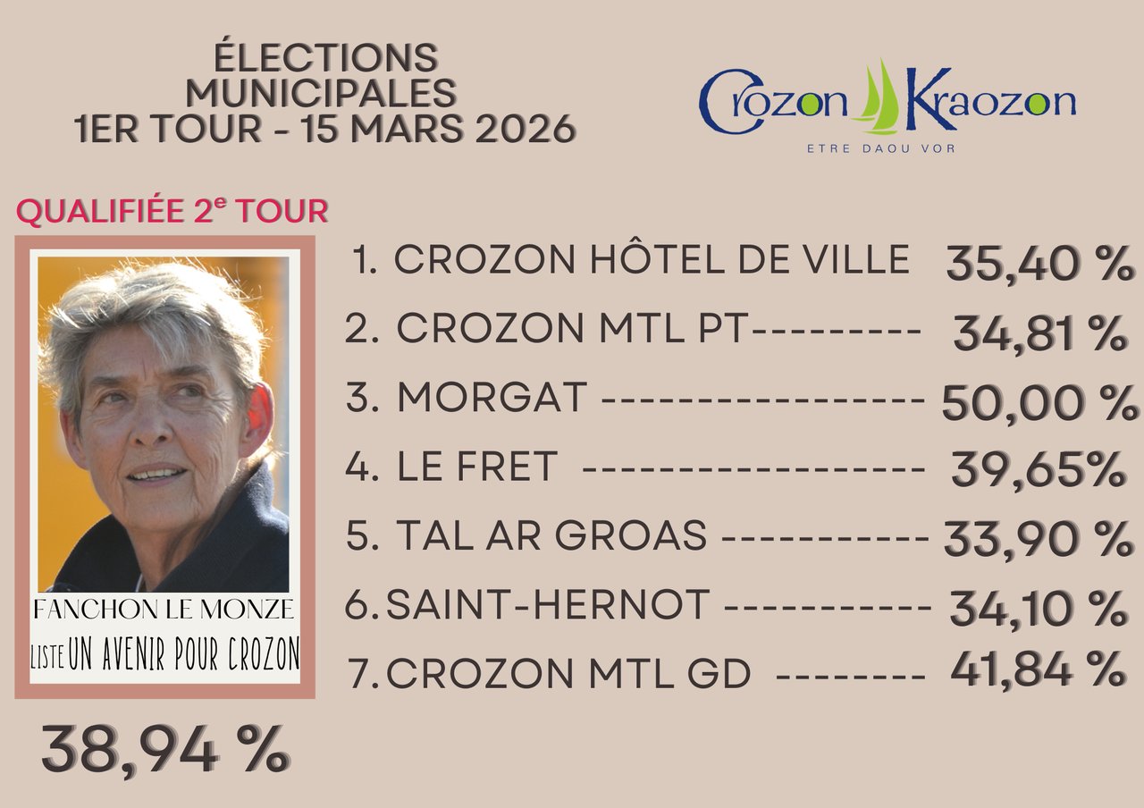 Retrouvez tous les résultats détaillés du 1er tour du scrutin sur www.crozon.bzh/elections/ ou faites défiler les photos ci-dessus.