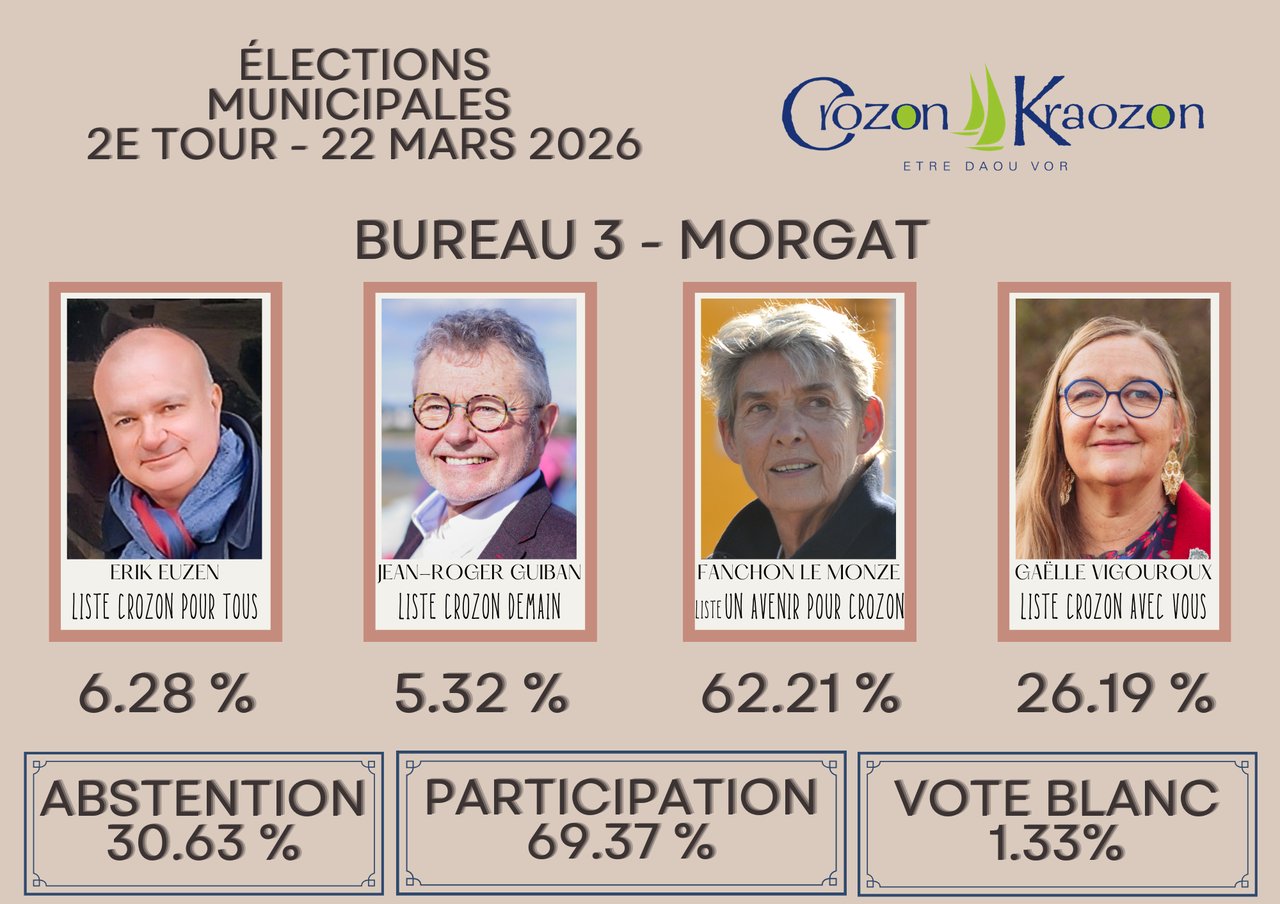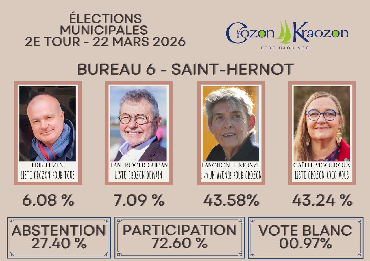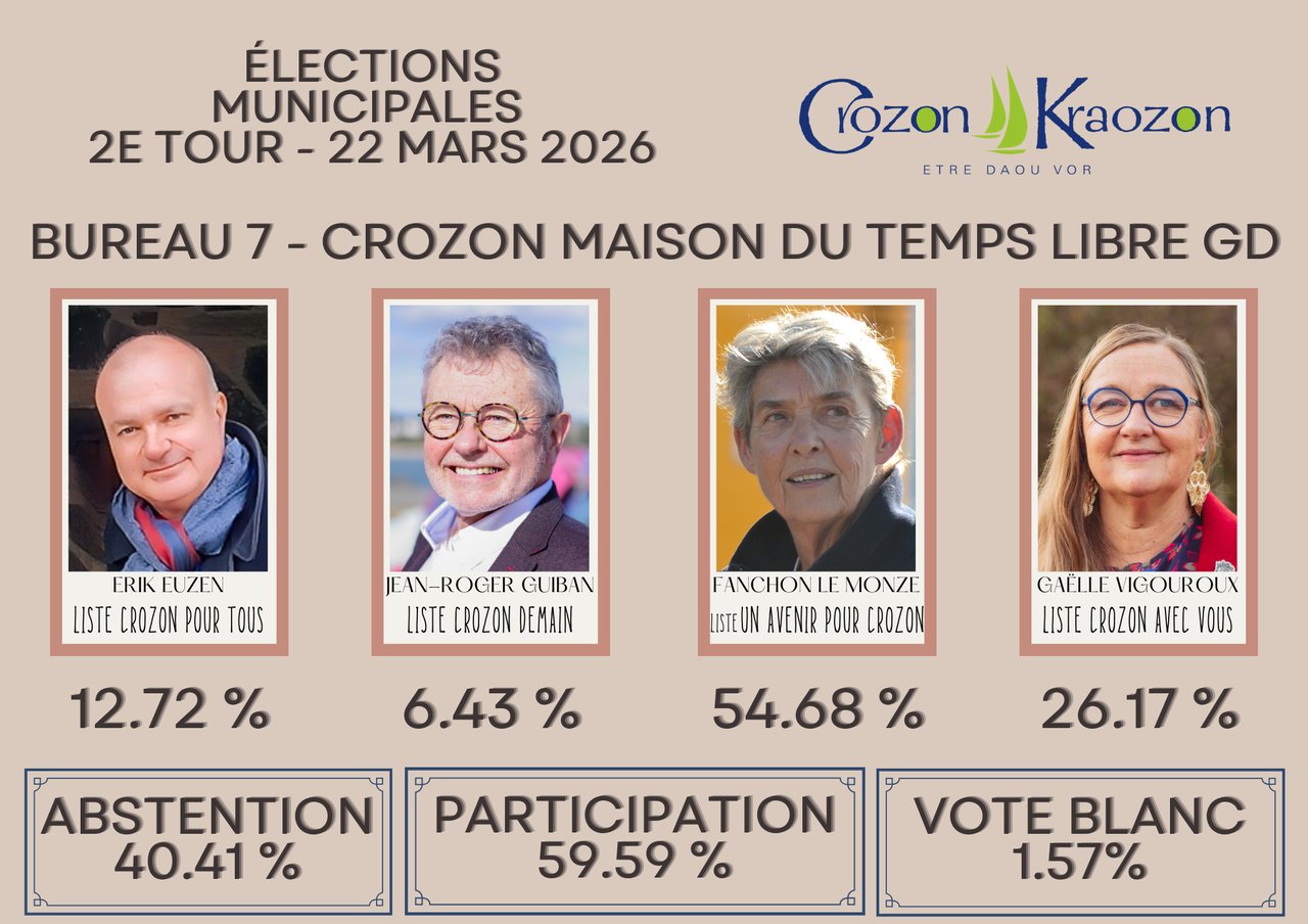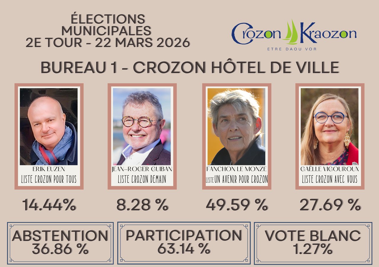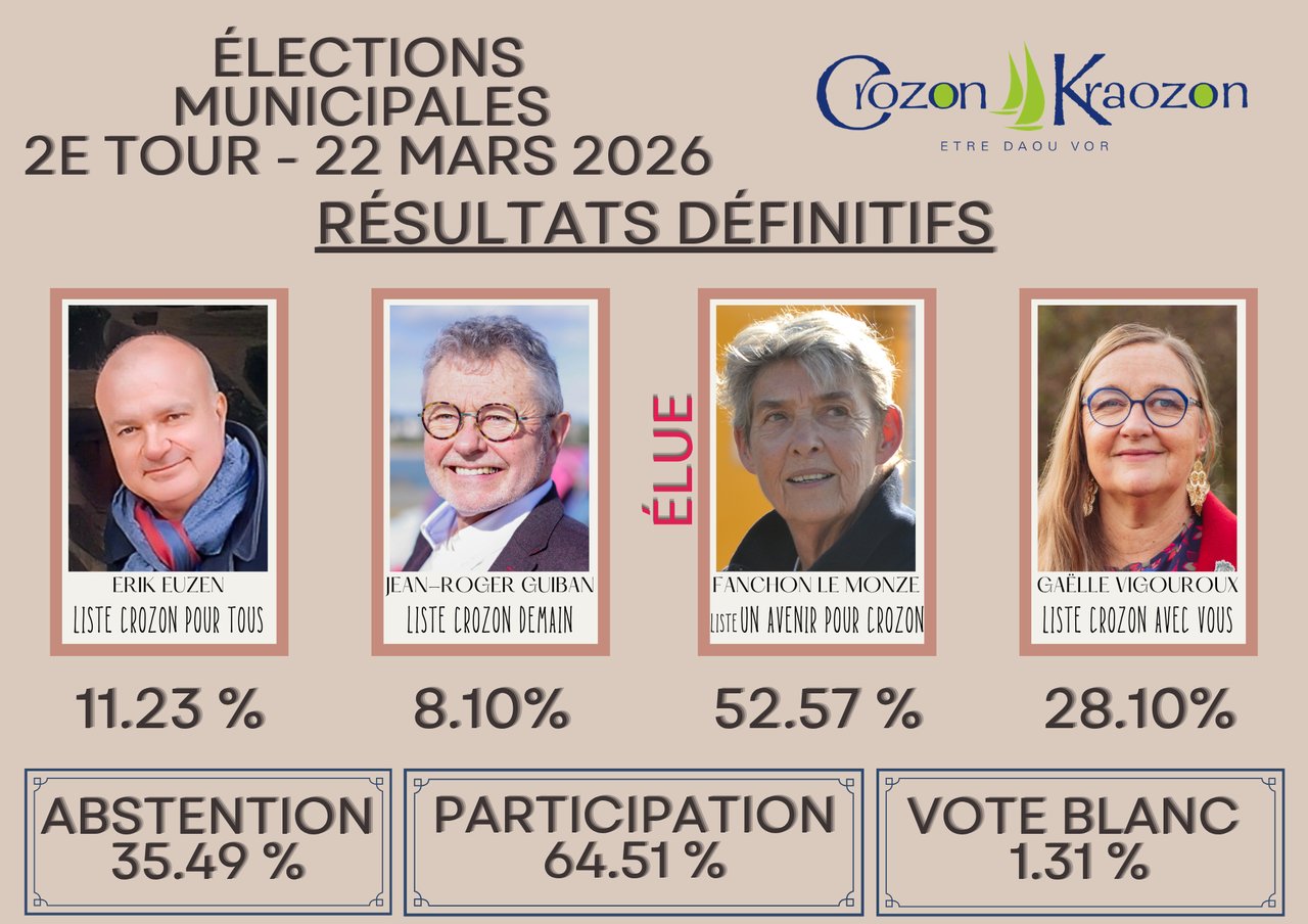 Retrouvez tous les résultats détaillés du 2e tour du scrutin sur www.crozon.bzh/elections/ ou faites défiler les photos ci-dessus.
