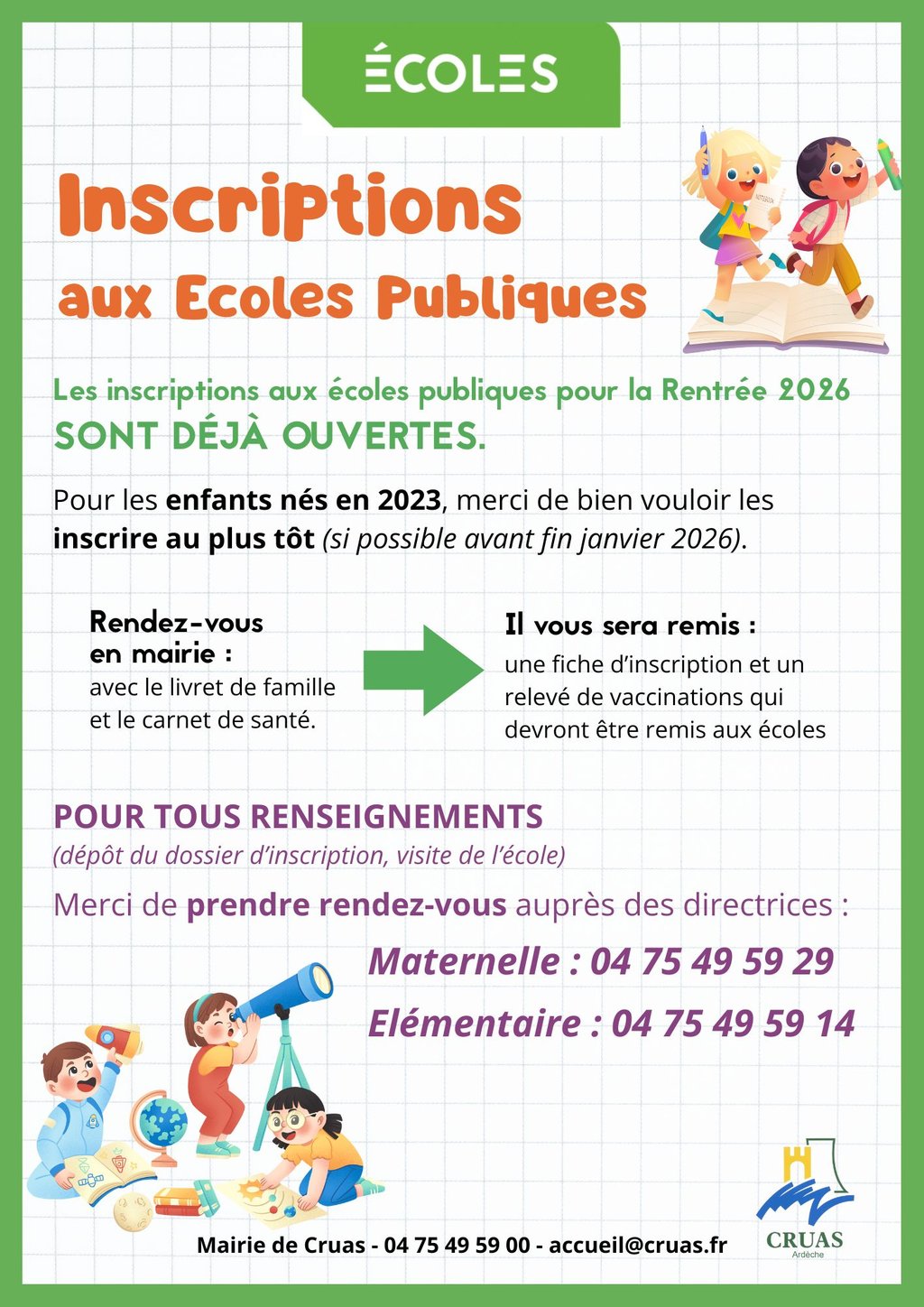 - Pour les enfants nés en 2023, merci de bien vouloir les inscrire au plus tôt (si possible avant fin janvier 2026).