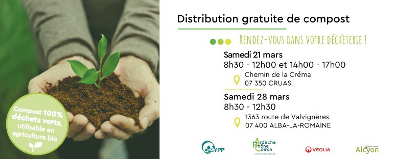 Le samedi 21 mars à la déchèterie de Cruas : venez récupérer jusqu'à 500l par personne de compost !