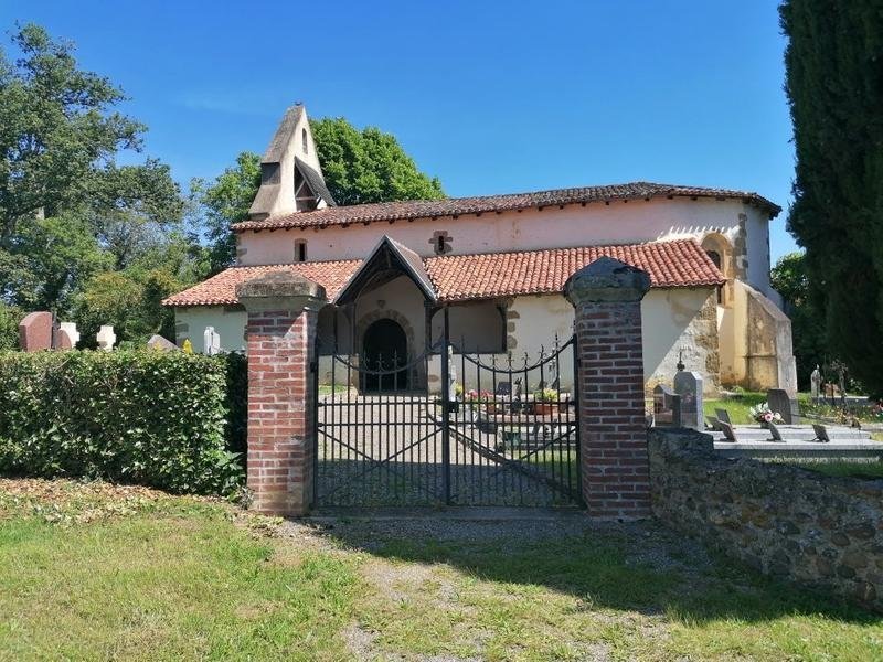 Entourée de son cimetière paroissial médiéval, l’église conserve une architecture sobre et authentique. Son entrée méridionale est protégée par un emban typiquement gascon, autrefois lieu de réunion des communautés villageoises. La porte en plein cintre, dissymétrique, témoigne de l’art roman. À l’intérieur, la nef unique conduit à un chevet polygonal, éclairé par de petites baies étroites.
