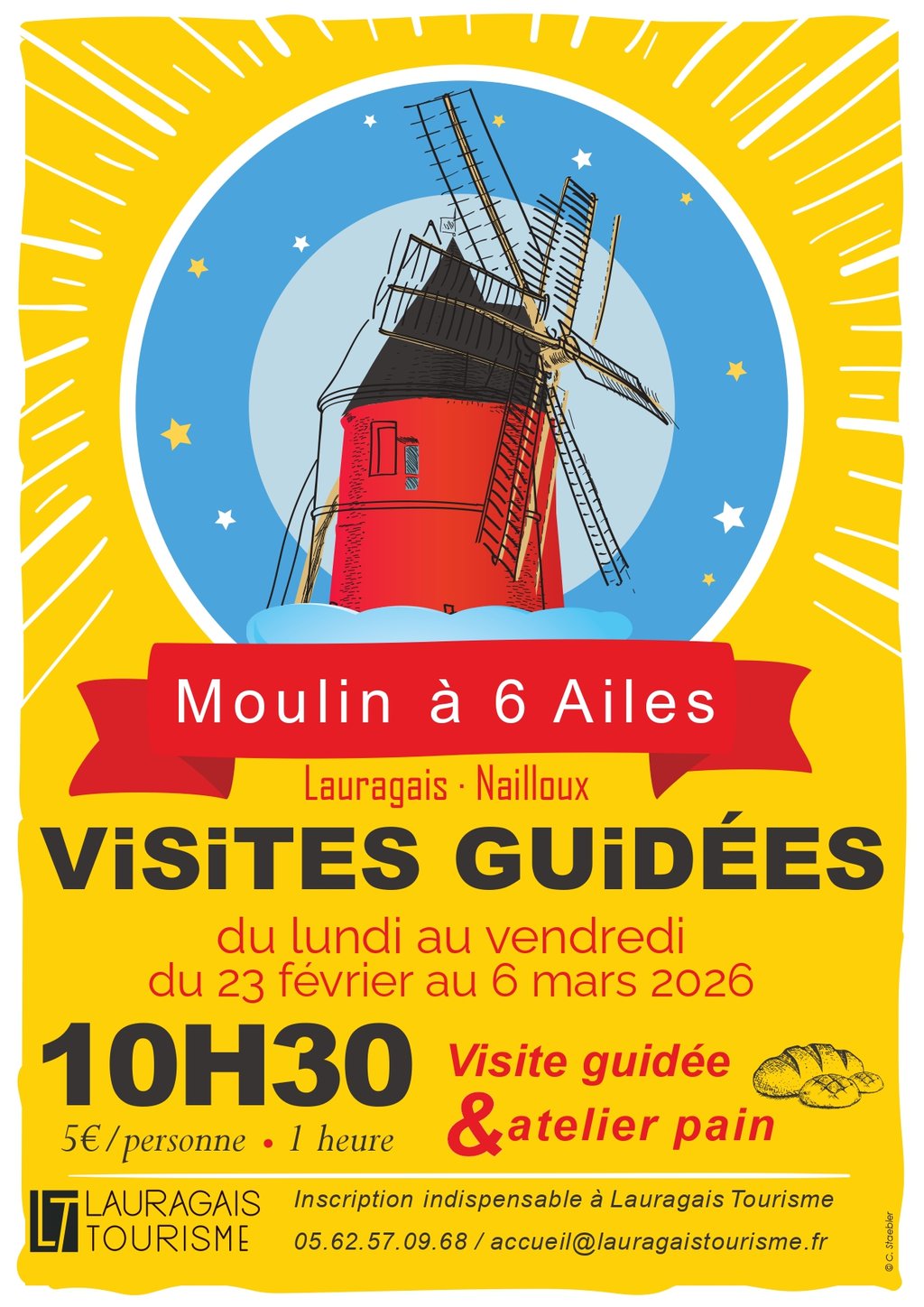 Le Moulin à six ailes de Nailloux ouvre ses portes pour les vacances ! Les guides de Lauragais Tourisme vous y donnent rendez-vous pour 1h de visite spécialement adaptée aux plus jeunes.