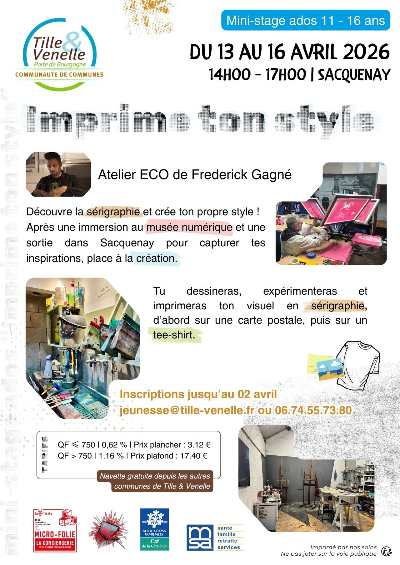 Inscriptions : jeunesse@tille-venelle.fr – 06 74 55 73 80 / Date limite : 2 avril