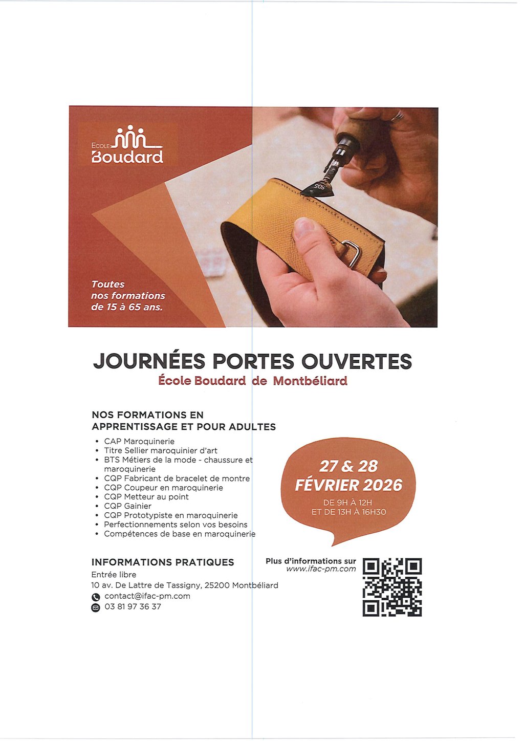 L’IFAC du Pays de Montbéliard organise 2 Journées Portes Ouvertes les jeudi 27 et vendredi 28 février 2026, réparties sur deux sites :