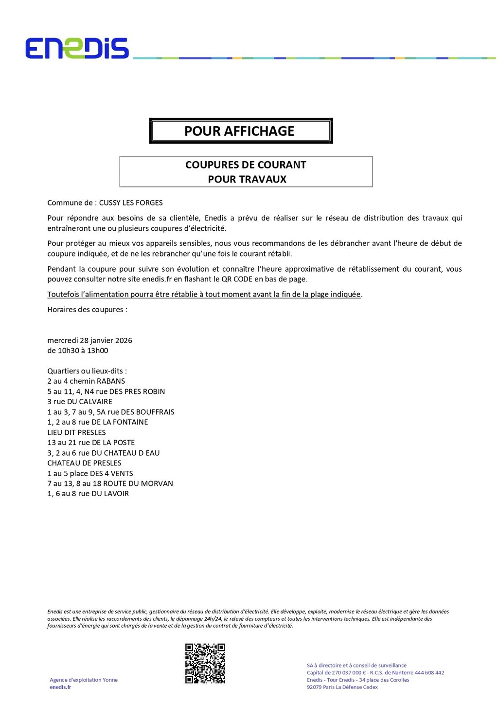 Pendant la coupure pour suivre son évolution et connaître l’heure approximative de rétablissement du courant, vous pouvez consulter notre site enedis.fr en flashant le QR CODE en bas de page.