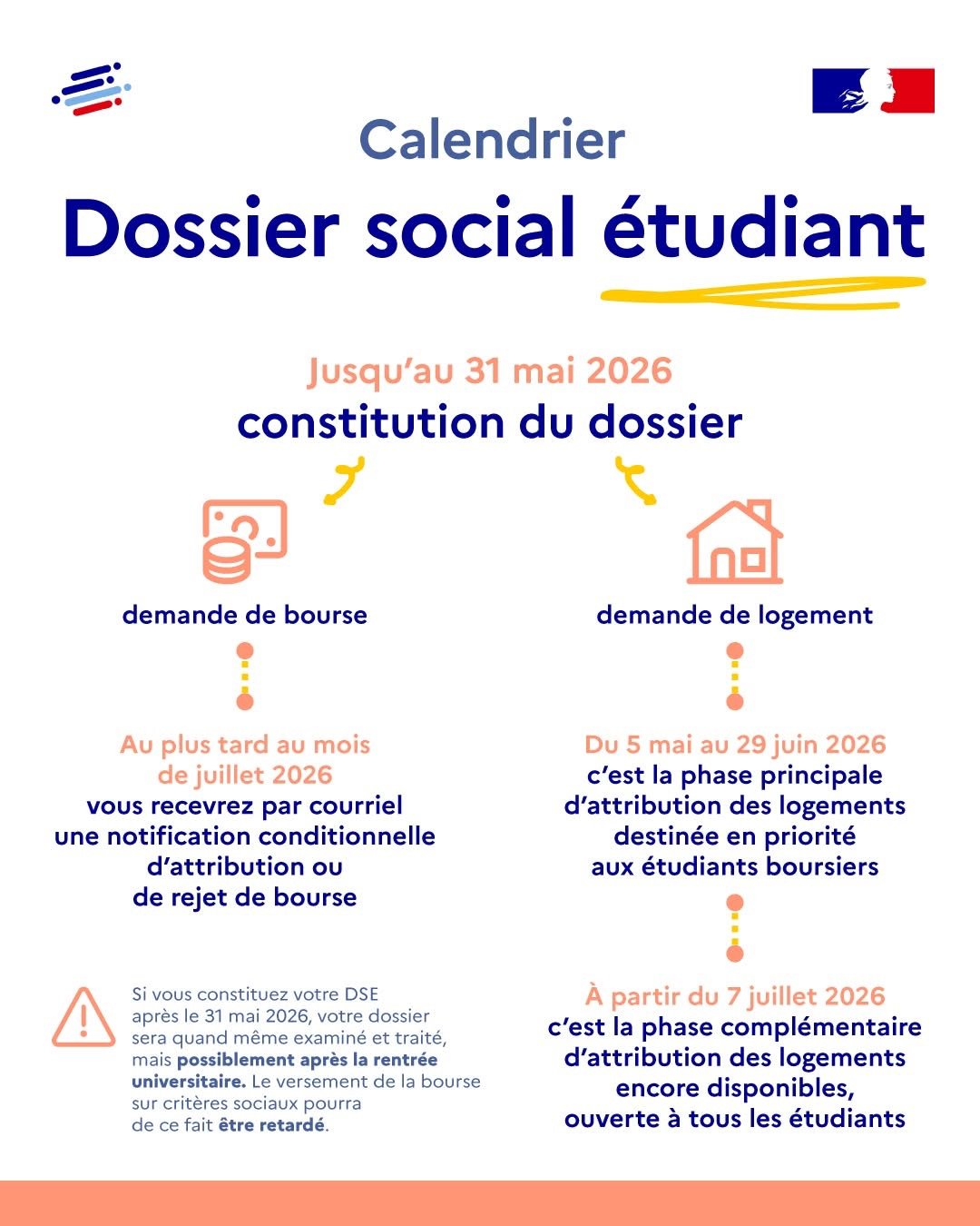 ⚠️ Si vous constituez votre DSE après le 31 mai 2026, votre dossier sera quand même examiné et traité, mais possiblement après la rentrée universitaire.
