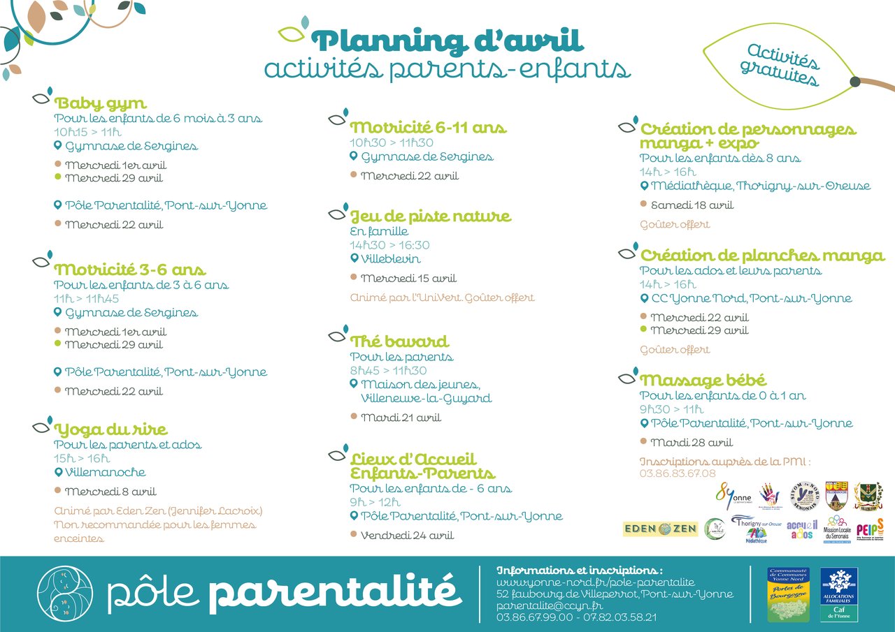 PÔLE PARENTALITÉ - ANIMATIONS D'AVRIL