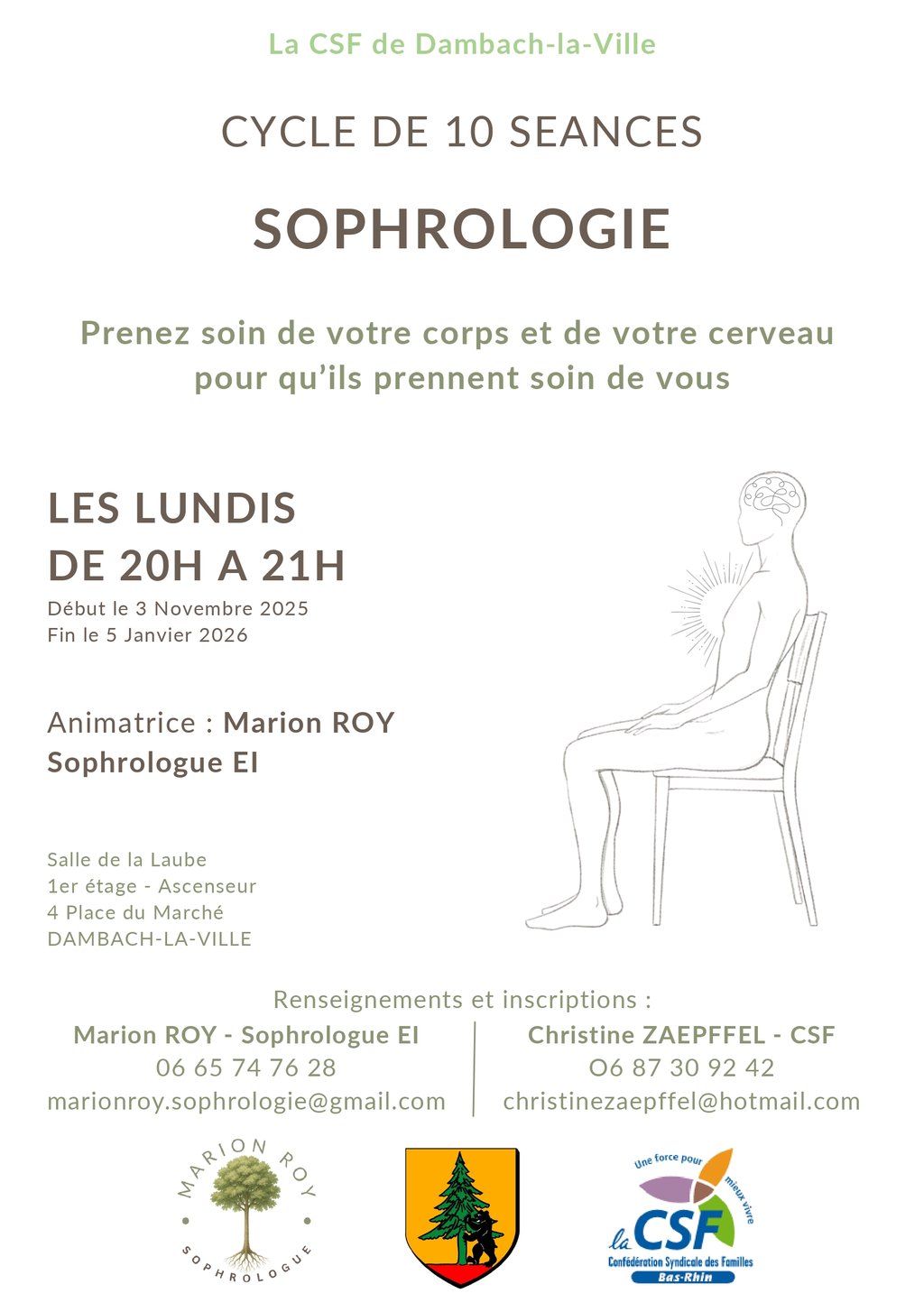 Cycle de 10 séances de Sophrologie par Marion ROY : Prenez soin de votre corps et de votre cerveau pour qu'ils prennent soin de vous.
