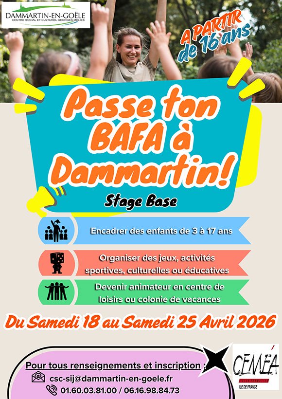Bonne nouvelle, une session B.A.F.A se déroule à Dammartin du samedi 18 au samedi 25 avril !