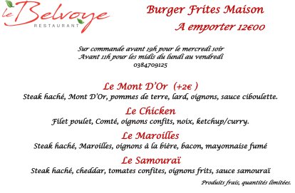 BURGER À EMPORTER MERCREDI SOIR OU LE MIDI UNIQUEMENT SUR COMMANDE