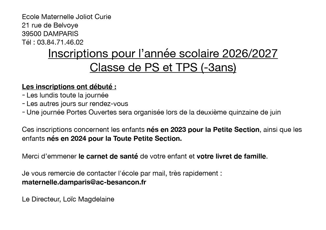 Inscriptions pour l’année scolaire 2026/2027