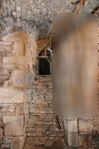 Les différentes portes murées tant côté château que côté église laissent supposer que des passages existaient alors entre les deux édifices.