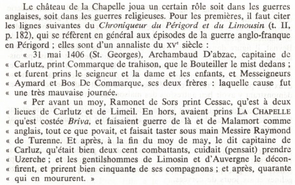 - 1252: Guillaume Malefayde assiste à l'hommage de Brassac, fait par le vicomte de Turenne à l'abbé de Tulle,