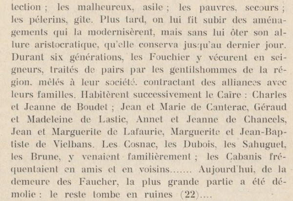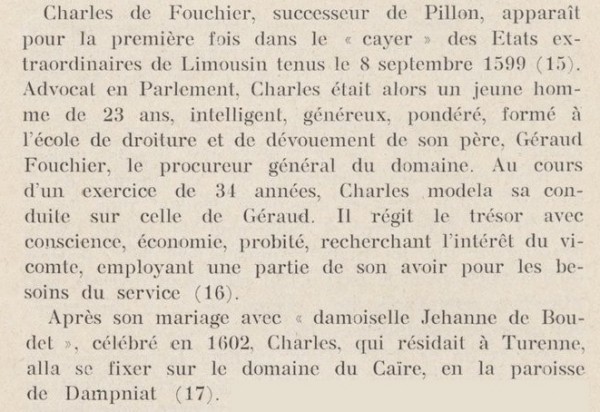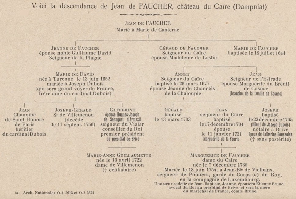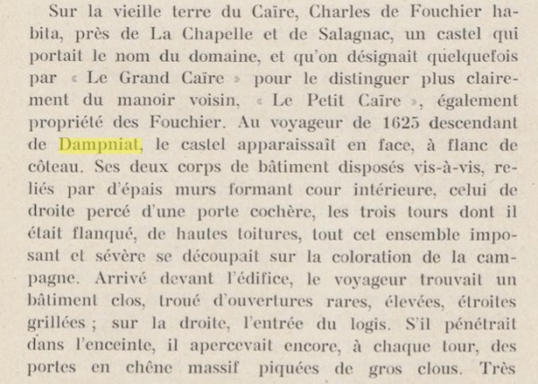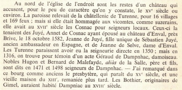 Mais les "Juyé" s'étant "éteint" dans les "Cosnac", on peut dire qu'à partir du 17ème siècle, les seigneurs dominant à Dampniat sont les "Cosnac"./MG