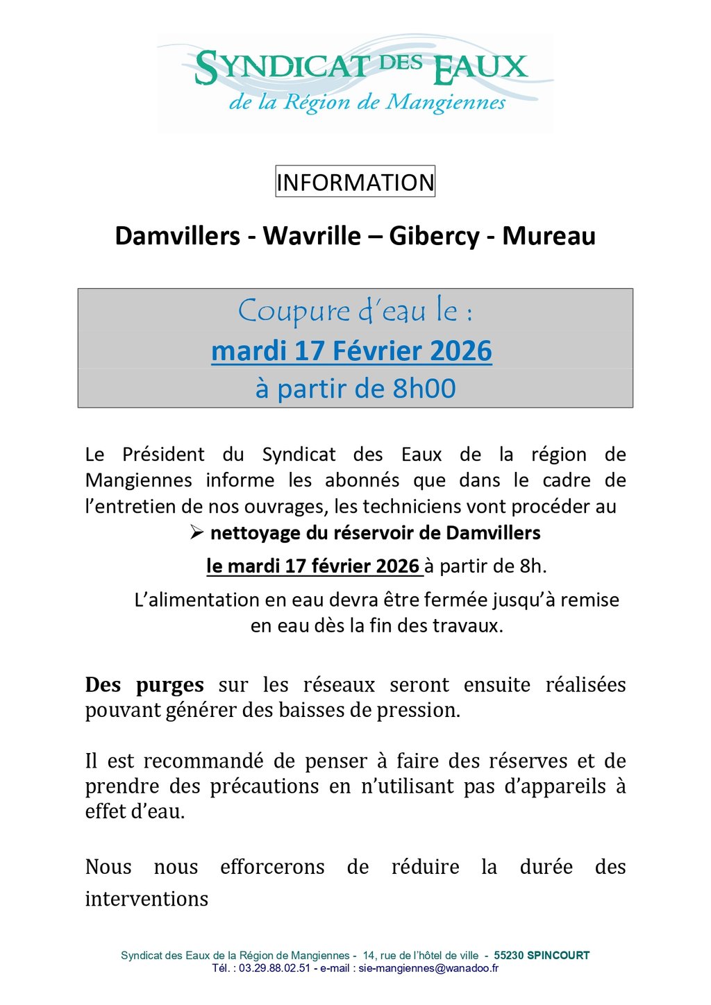 INFORMATION SYNDICAT DES EAUX DE MANG...