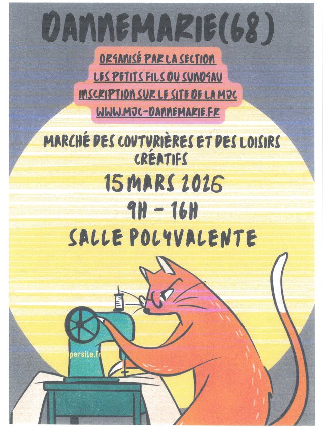 Le dimanche 15 mars aura lieu la troisième édition du marché des couturières et des loisirs créatifs à la salle polyvalente de Dannemarie.