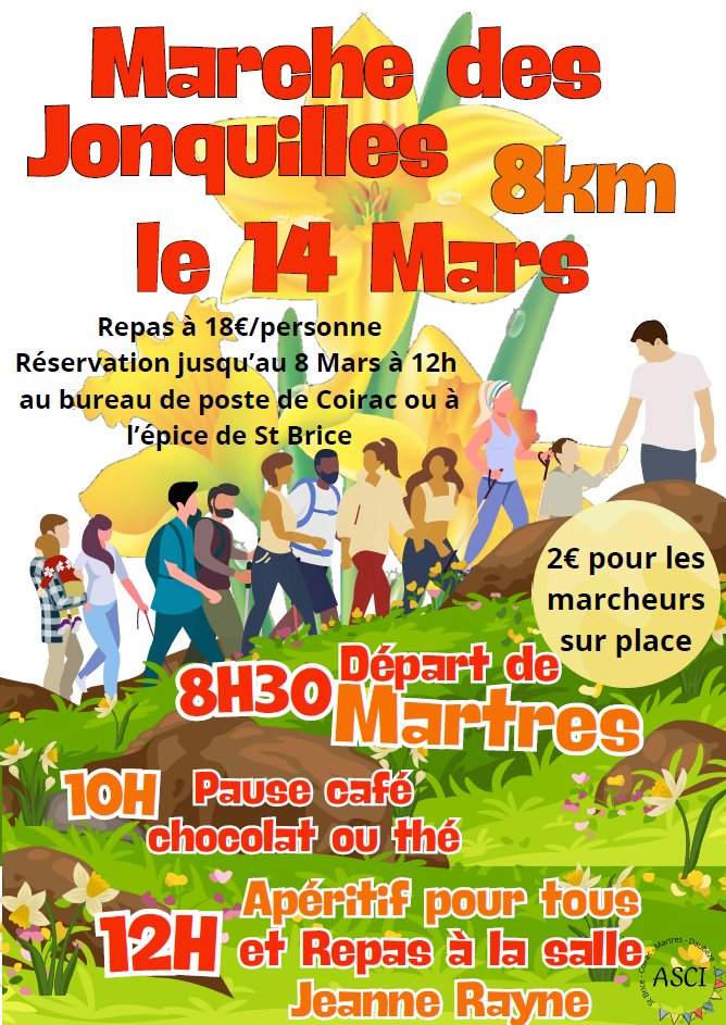đ¶L'ASCI organise une Marche le 14 Mars 2026 Ă 8H30 au dĂ©part de Martres. (2âŹ/personne)