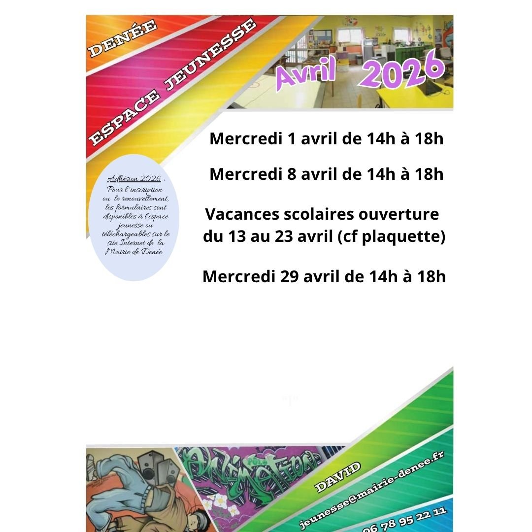 Voici les ouvertures de l’espace jeunesse d'avril 2026