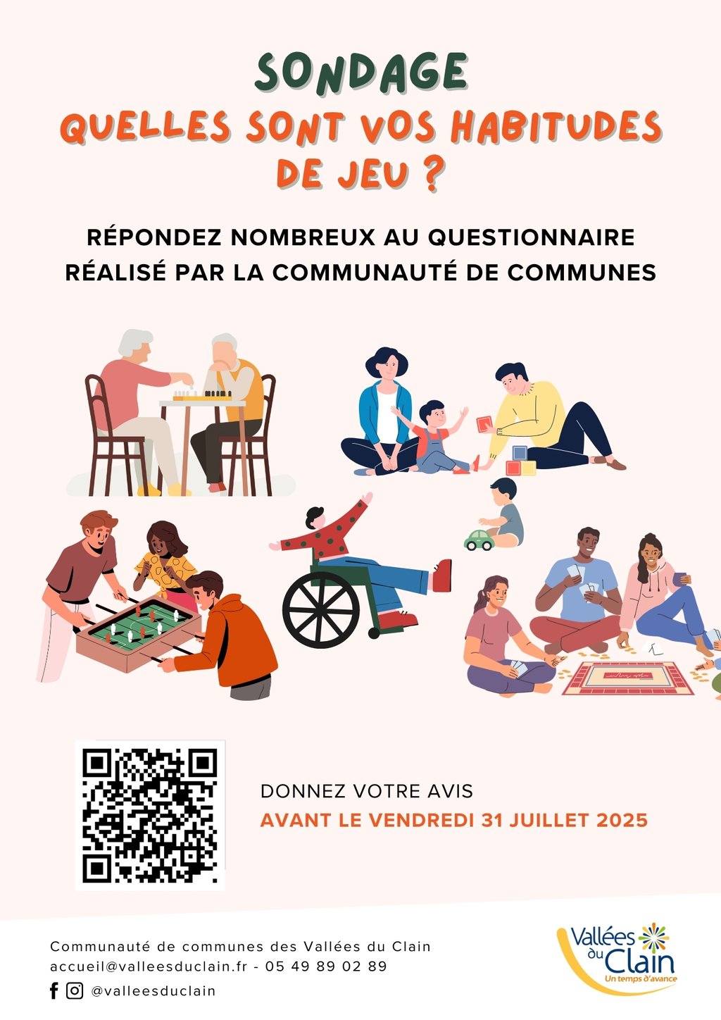 Pour toute question sur ce sondage, merci de contacter Sandrine Meunier, coordinatrice de la Convention Territoriale Globale de la Communauté de communes via cette adresse mail : coordoctg@valleesduclain.fr