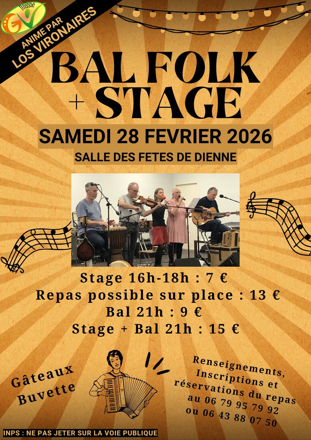 La GV Dienné organise son bal folk, animé par Los Vironaires, le samedi 28 février 2026 à la salle des fêtes de Dienné.