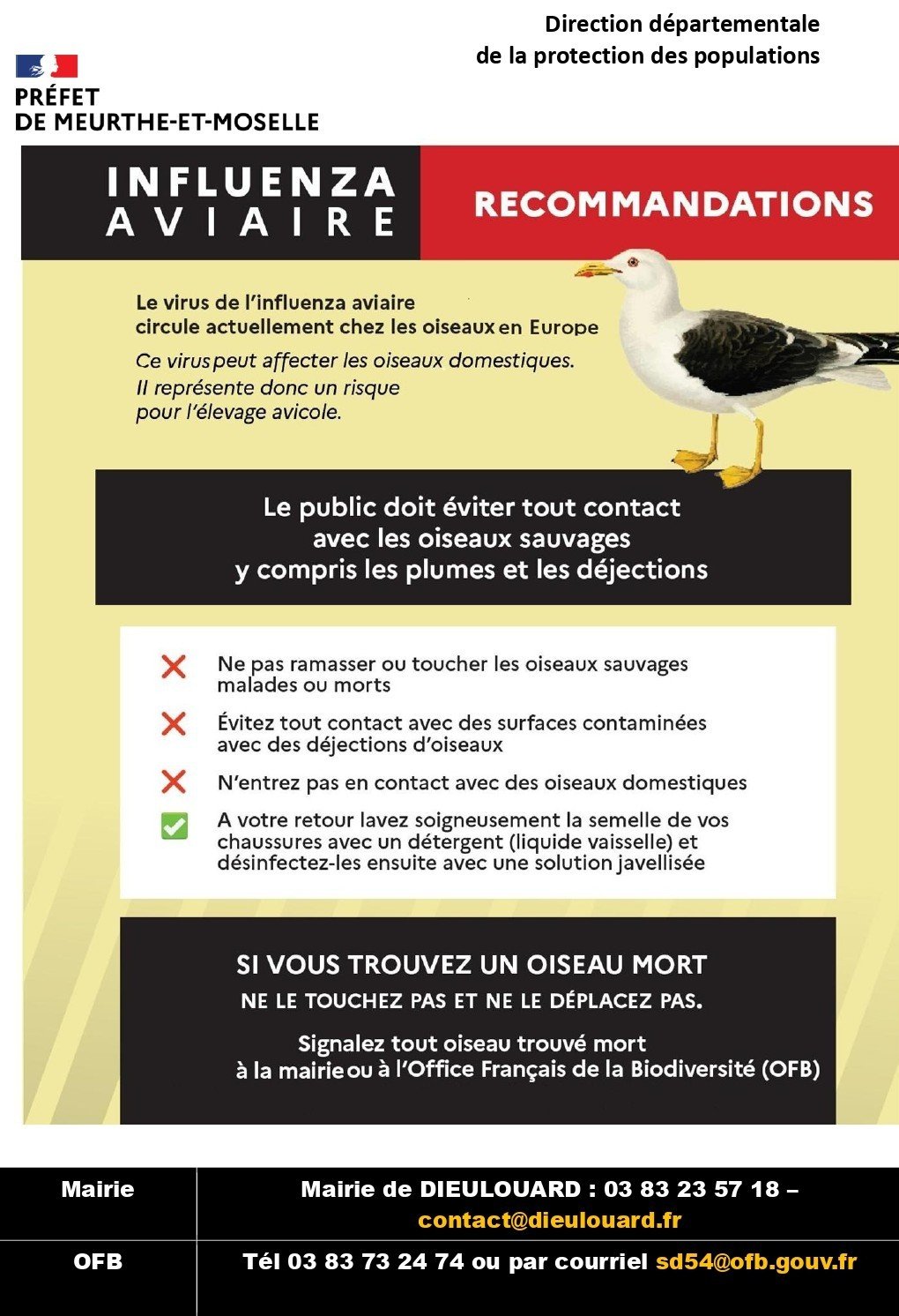 Ne touchez pas les oiseaux sauvages, malades ou morts