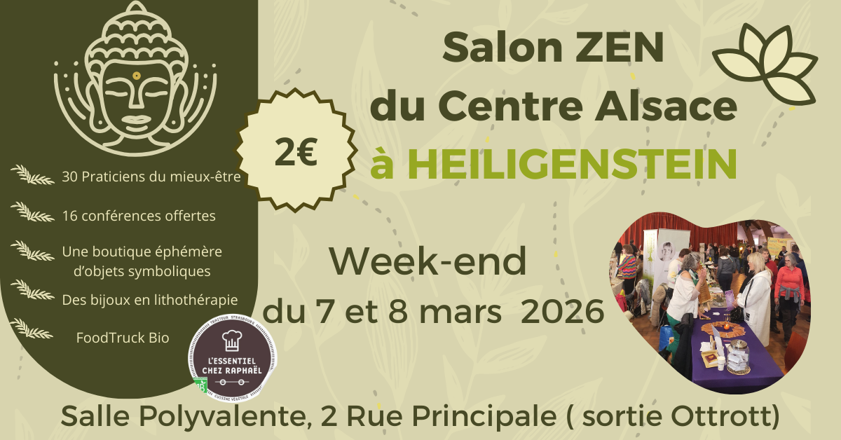 Lors de ce salon zen, retrouvez les professionnels de l'accompagnement pour échanger sur vos besoins, leurs pratiques et recevoir des soins individuels.Des conférences seront proposées tout au long du week-end.Des boutiques éphémères d'articles de méditation, bijoux en pierres naturelles et objets symboliques seront présentes.